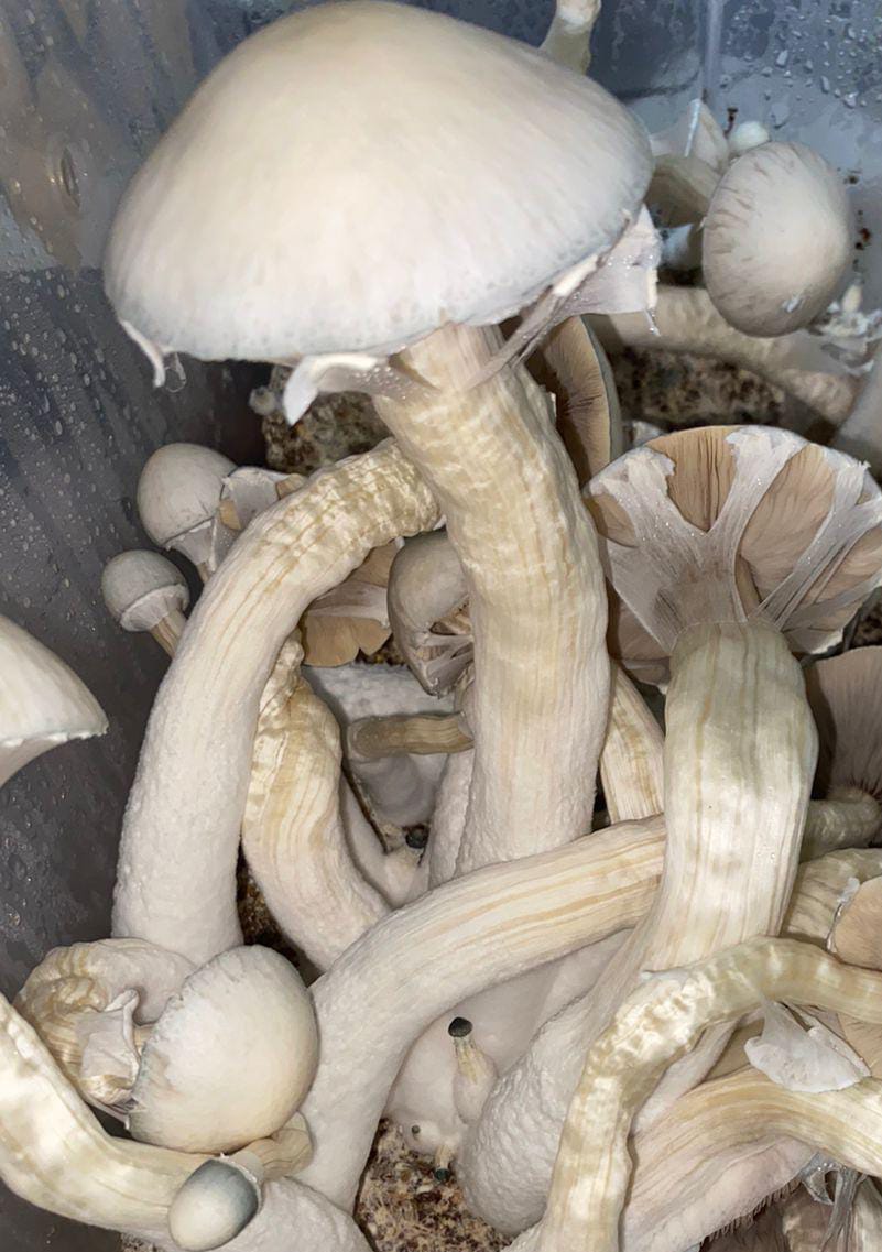 Lleva a tu colección variedad: AA+, una de las variedades más estéticas y apreciadas por su coloración leucística (blanco cremoso). Es una cepa famosa por su elegancia y por producir frutos esbeltos con una apariencia única en el mundo micológico.
