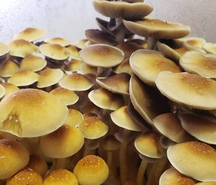 La Golden Teacher es la variedad más legendaria en el mundo micológico. Es reconocida por sus característicos sombreros dorados con motas amarillas y por ser una de las cepas más estables, robustas y fáciles de estudiar.